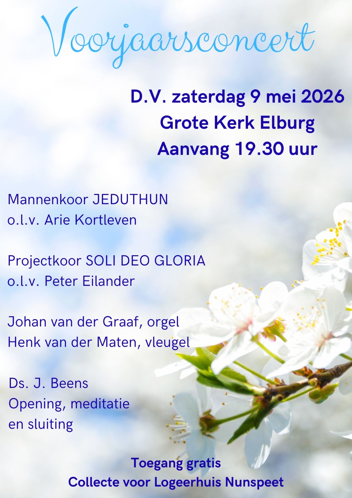 Op zaterdag 9 mei 2026 hopen we te gaan zingen met gemengd (project) koor Soli Deo Gloria uit Nunspeet